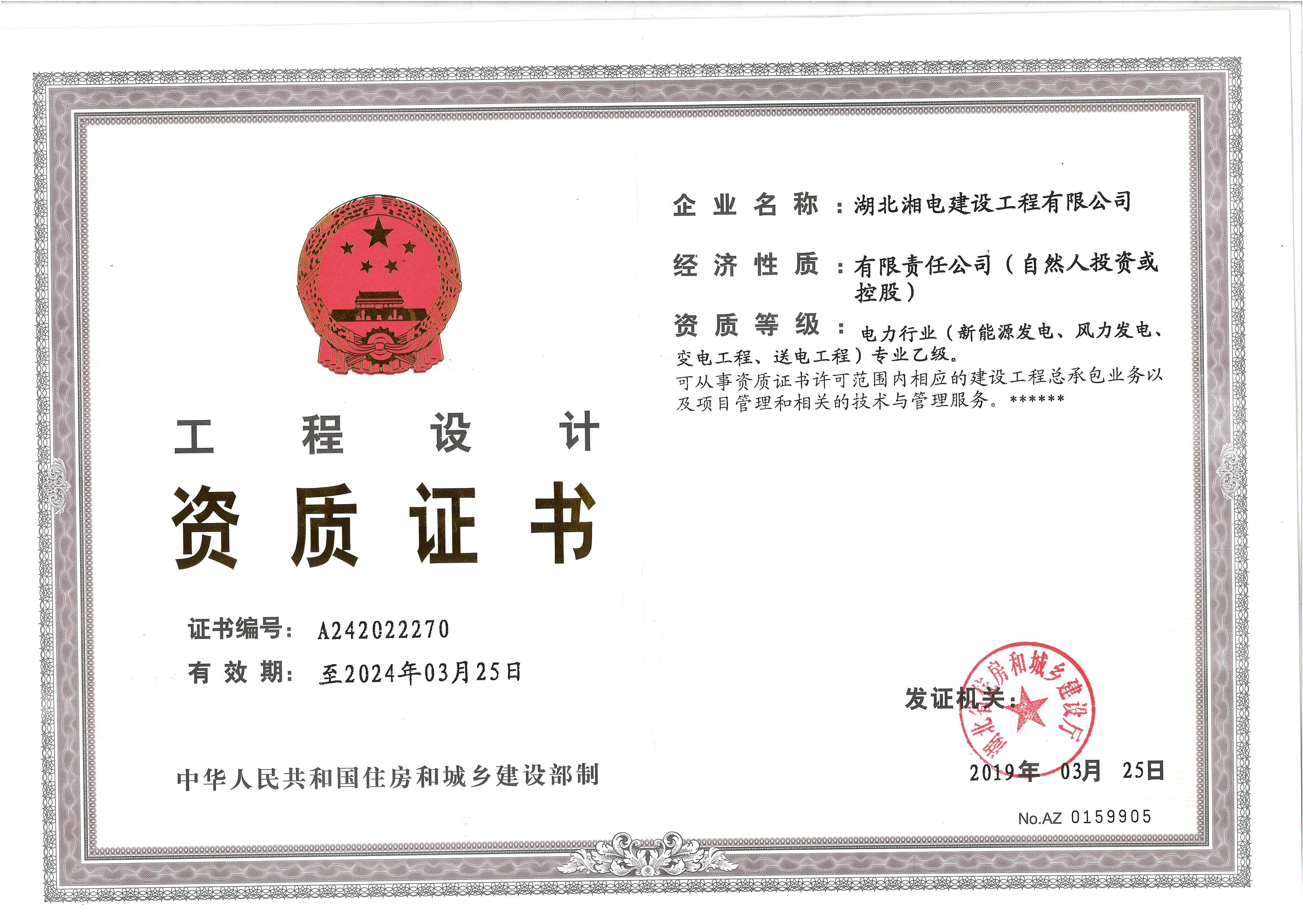 热烈庆祝湖北湘电建筑机电安装工程专业承包贰机资质、电力行业设计资质(新能源发电、风力发电、变电工程、送电工程)专业乙级顺利公示!