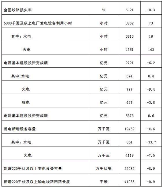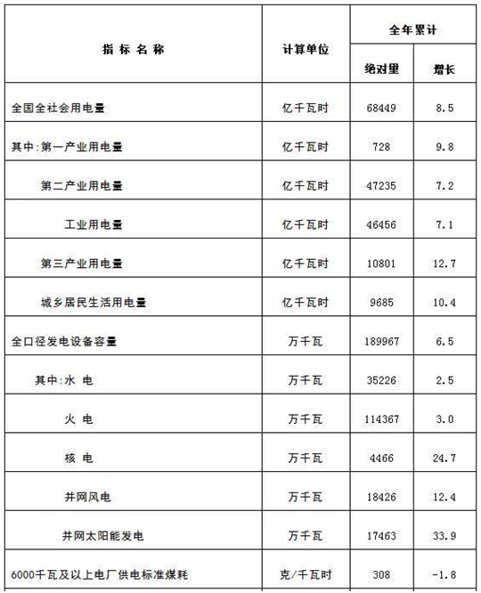 全国电力工业统计数据一览表
