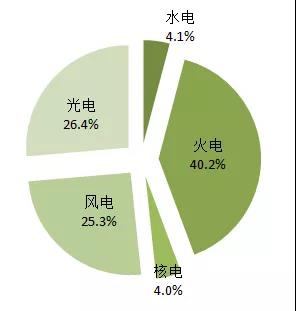 分类型看,2019年,火电(包括煤电、气电、生物质发电)新增装机占全部新增装机的40.2%,太阳能发电新增装机占比26.4%,风电新增装机占比25.3%,水电新增装机占比为4.1%,核电新增装机占比4%。以风电、太阳能发电为代表的新能源发电合计占比超过51%,连续三年成为新增发电装机的最大主力。