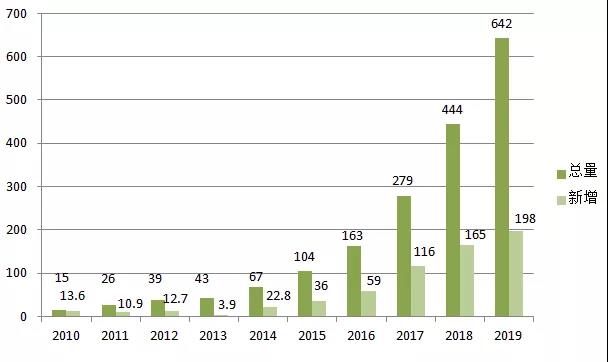 图15  2010~2019年海上风电装机和新增装机情况(单位:万千瓦)