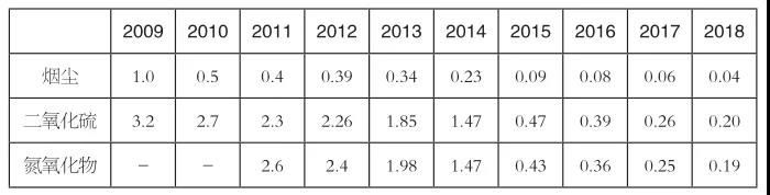 表7   2009~2018年电力行业排放总量情况(单位:万吨)