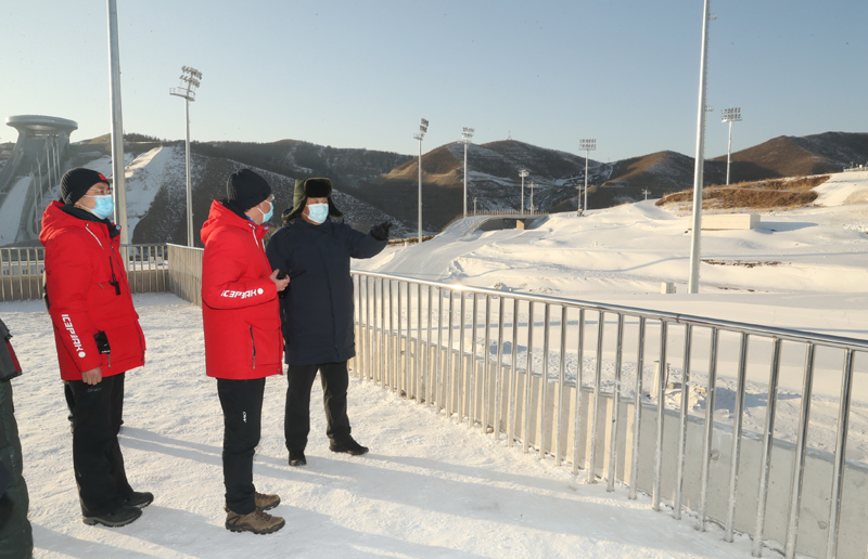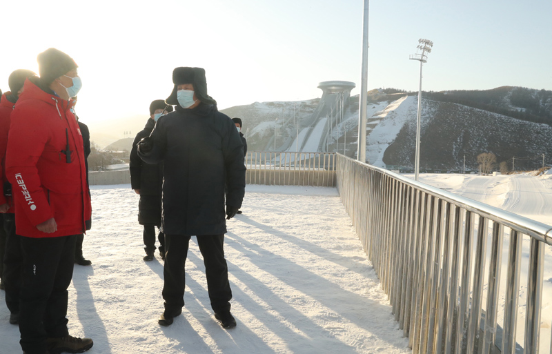 1月18日至20日,中共中央总书记、国家主席、中央军委主席习近平在北京、河北考察,并主持召开北京2022年冬奥会和冬残奥会筹办工作汇报会。这是19日下午,习近平在张家口赛区国家跳台滑雪中心考察调研。新华社记者 鞠鹏 摄