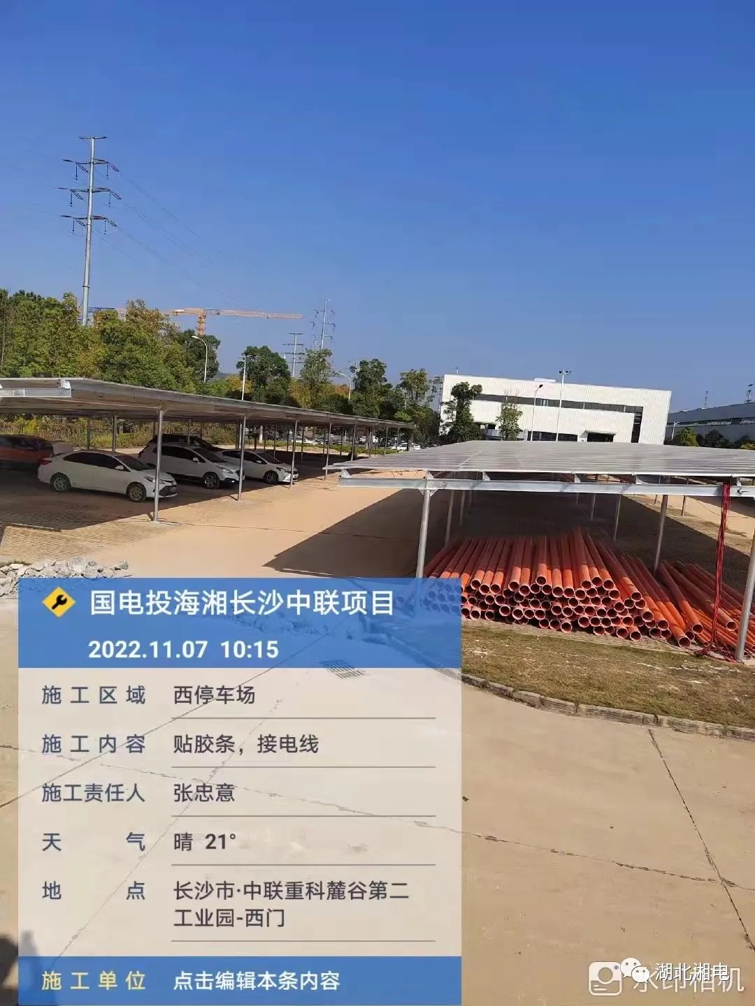 据悉,该项目西区停车棚已完成施工95%,总计安装光伏板1988块。东区停车棚暂未开始施工。厂区屋顶总计安装光伏板1852块,已完成施工25%。