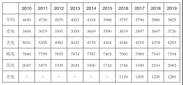 表4   2010~2019年发电设备利用小时数(单位:小时)