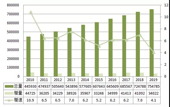 注:2019年数据来自于中电联快报,其他来自中电联历年电力工业统计数据,增速系计算所得,如无特殊标注,下同