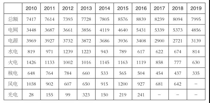 表5   2010~2019年全国电力投资情况(单位:亿元)