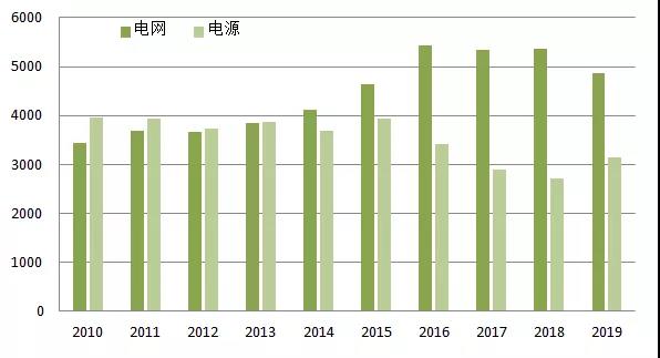 图27  2010~2019年电网电源投资情况(单位:亿元)