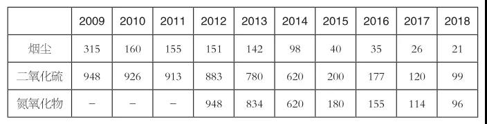 表7   2009~2018年电力行业排放总量情况(单位:万吨)