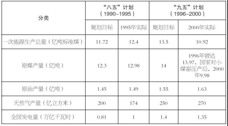 “八五”至“九五”期间,我国能源战略规划转向能源环境与效率、清洁可再生能源发展及相应的法律法规制定。“八五”规划纲要把十年规划远景和五年中期安排结合起来,从实现20世纪末战略目标的要求出发制定“八五”计划。“八五”计划中首次提出,坚持开发与节约并重的方针,把节约放在突出位置。提出五年内,全国共节约和少用能源1亿吨标准煤。相比于对能源产供的大力支持,能源节约的规划刚刚开始。