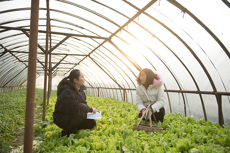 2020年12月30日,纪检监察干部(左)在浙江湖州吴兴区埭溪镇璞心农场走访农业大户,核实涉农补贴发放和帮扶政策落实情况。新华社记者 翁忻旸 摄