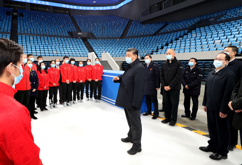 1月18日至20日,中共中央总书记、国家主席、中央军委主席习近平在北京、河北考察,并主持召开北京2022年冬奥会和冬残奥会筹办工作汇报会。这是18日上午,习近平在位于北京市海淀区的首都体育馆考察调研。新华社记者 鞠鹏 摄