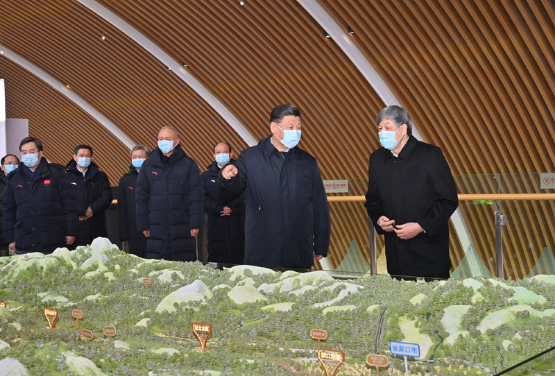 1月18日至20日,中共中央总书记、国家主席、中央军委主席习近平在北京、河北考察,并主持召开北京2022年冬奥会和冬残奥会筹办工作汇报会。这是19日下午,习近平在京张高铁太子城站考察调研。新华社记者 岳月伟 摄